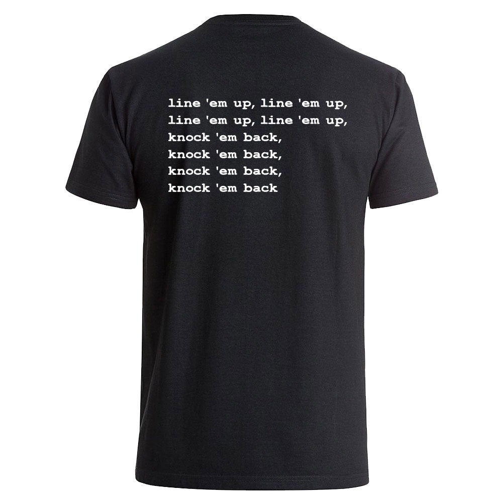 line 'em up, line 'em up, line 'em up, line 'em up, knock 'em back, knock 'em back, knock 'em back, knock 'em back